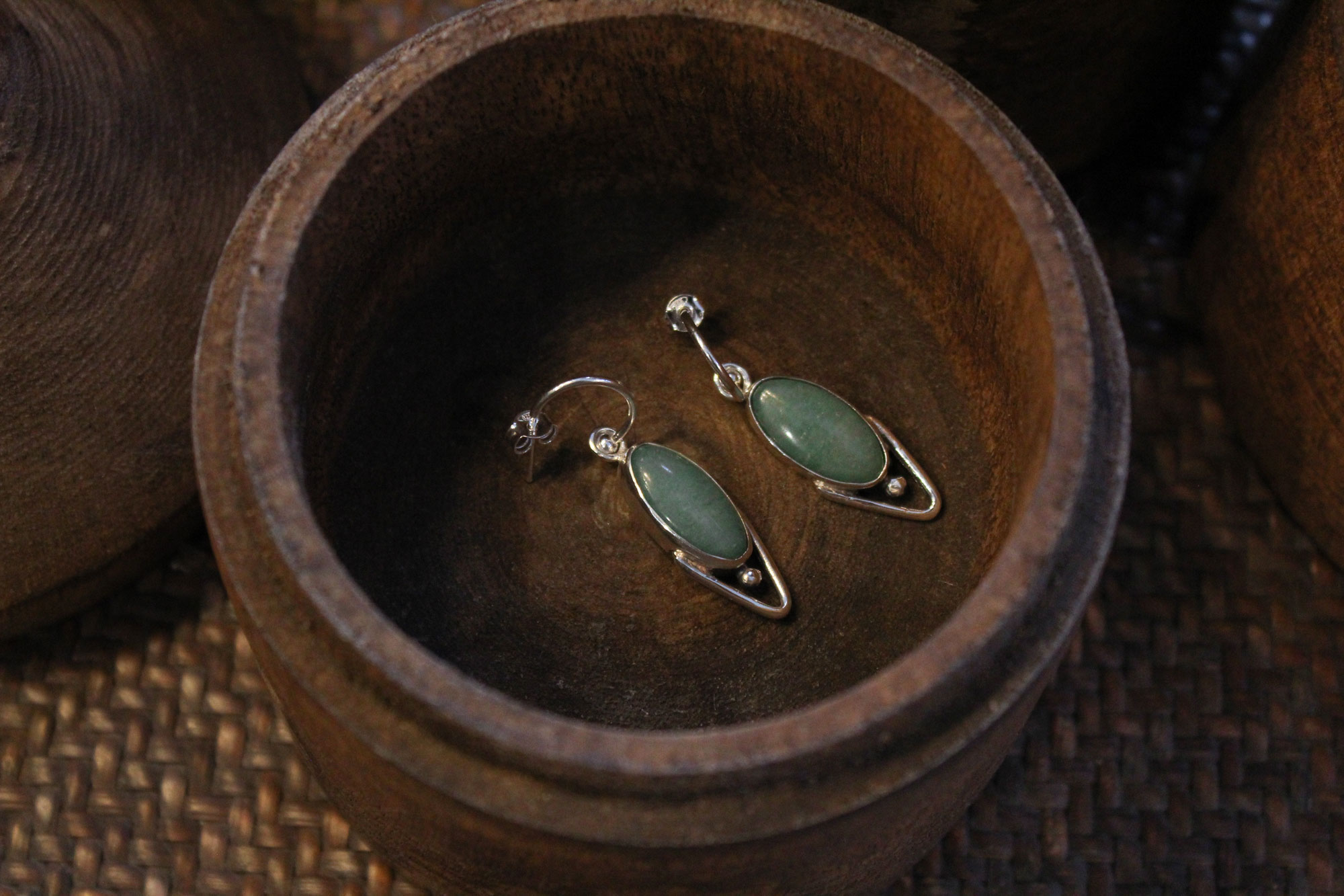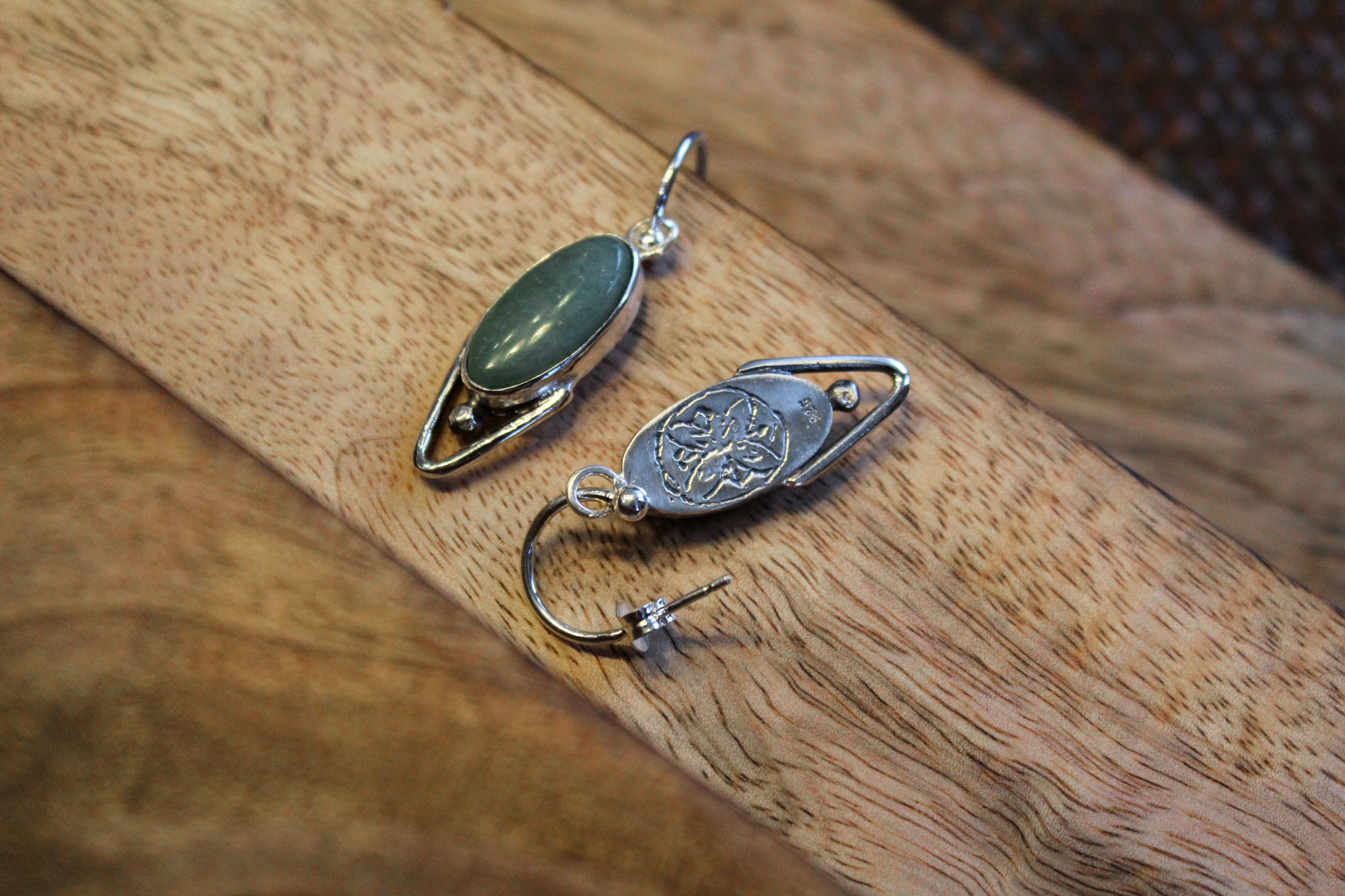 Μοναδικά, χειροποίητα σκουλαρίκια ελληνικής δημιουργίας κατασκευασμένα από γυαλισμένο ασήμι (polished silver) με πανέμορφα πετρώματα αβεντουρίνης.