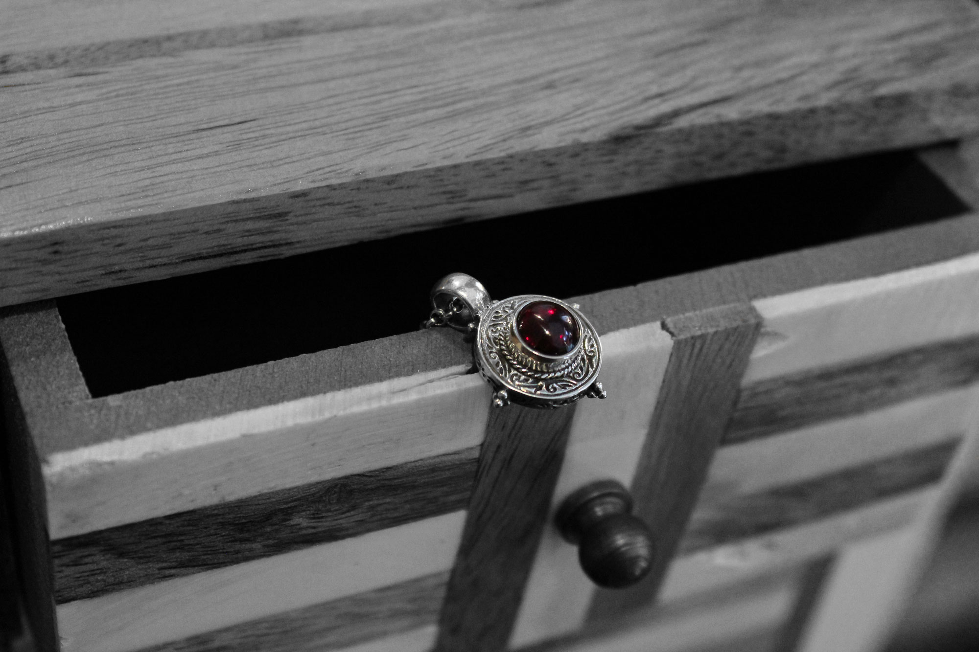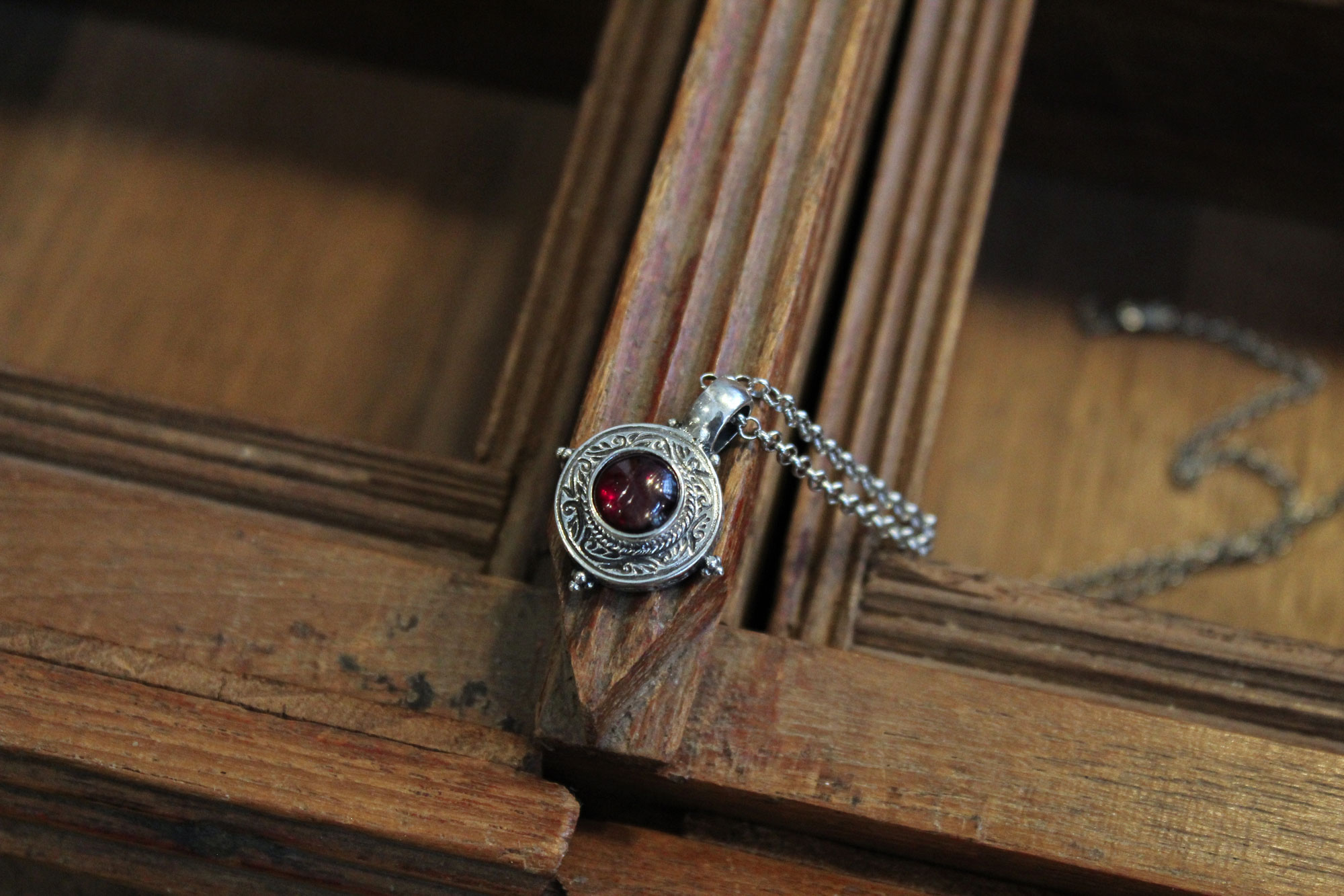 SAVATI χειροποίητο μενταγιόν κατασκευασμένο από ασήμι με πανέμορφο εγχάρακτο σχεδιασμό και στρογγυλό πέτρωμα γρανάδας (8mm).