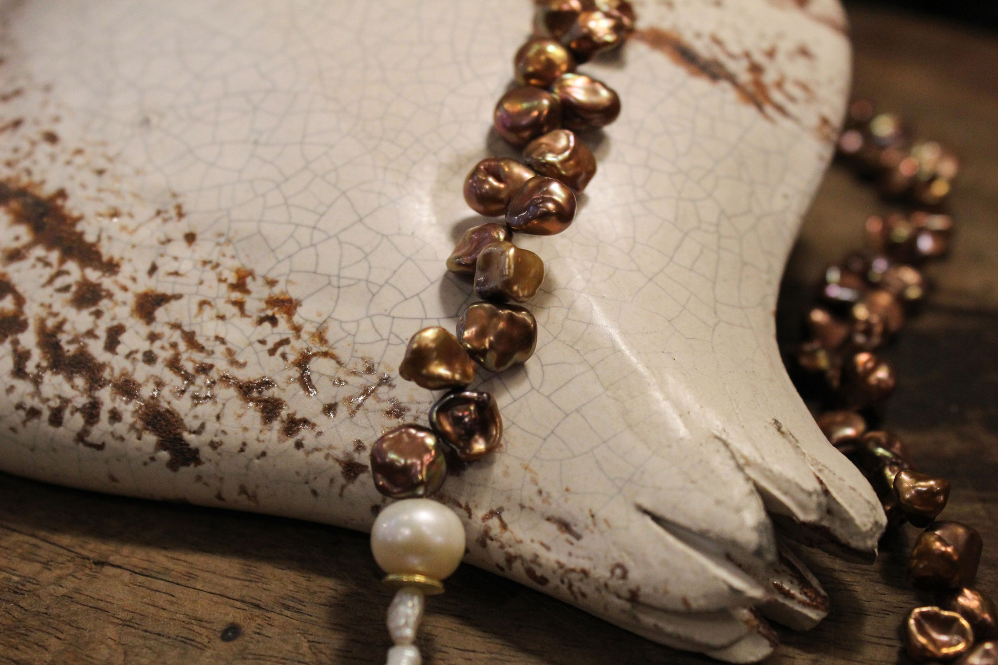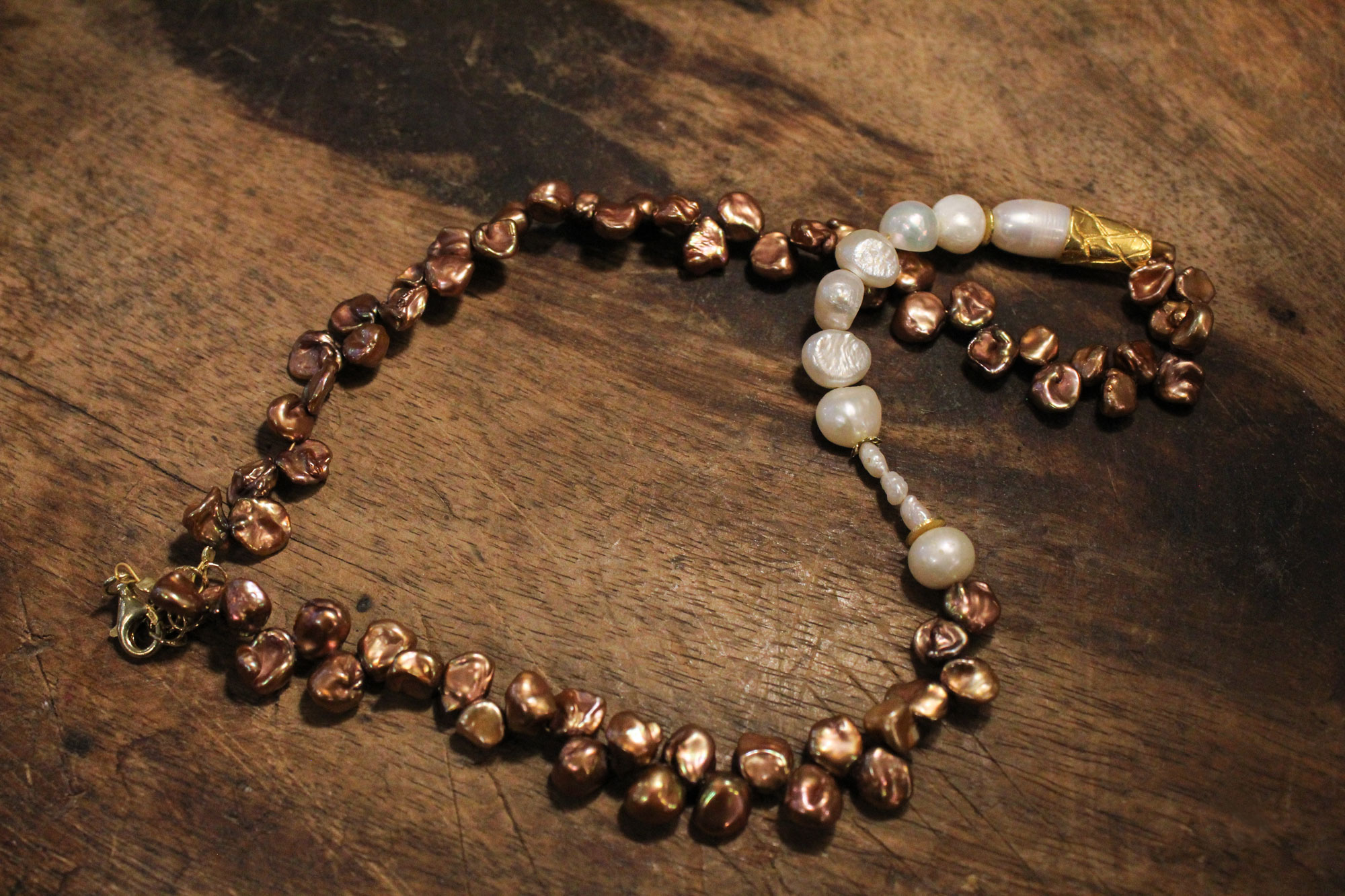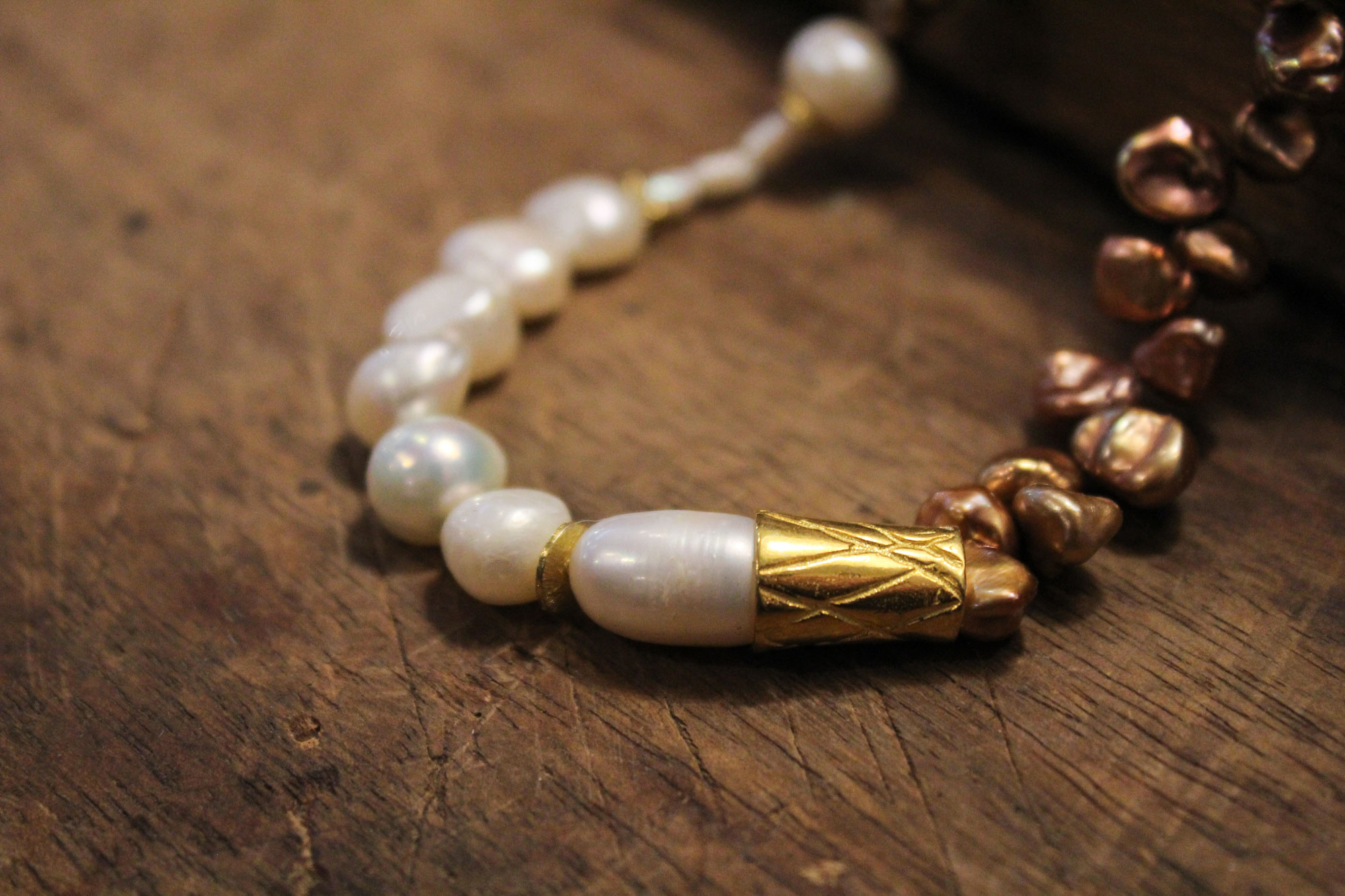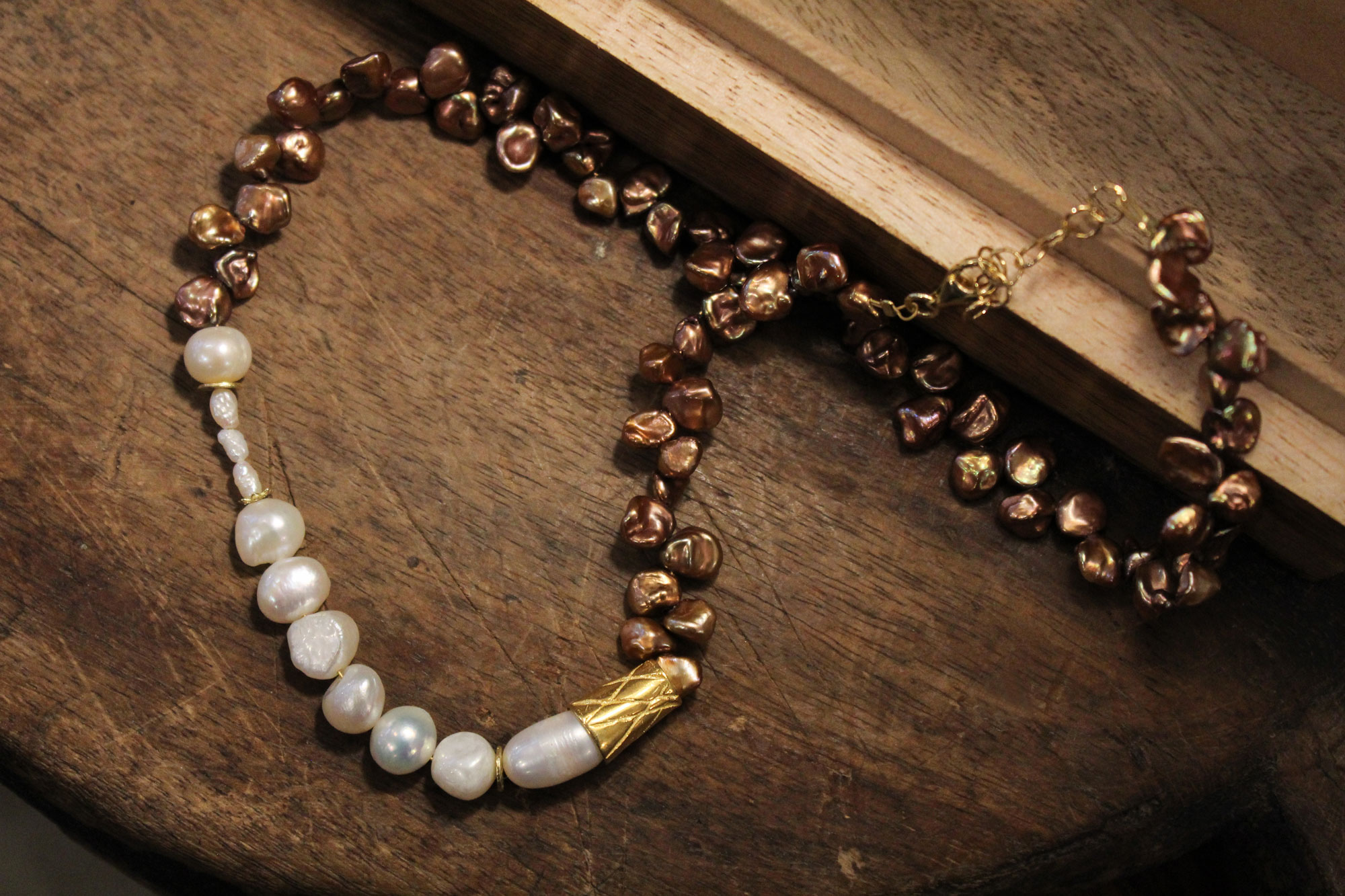 MIKA GRIVAKI χειροποίητο κολιέ με δύο ειδών μαργαριτάρια, Keshi και Καλλιέργειας γλυκού νερού δεμένα με ασήμι και επίχρυσα στοιχεία!