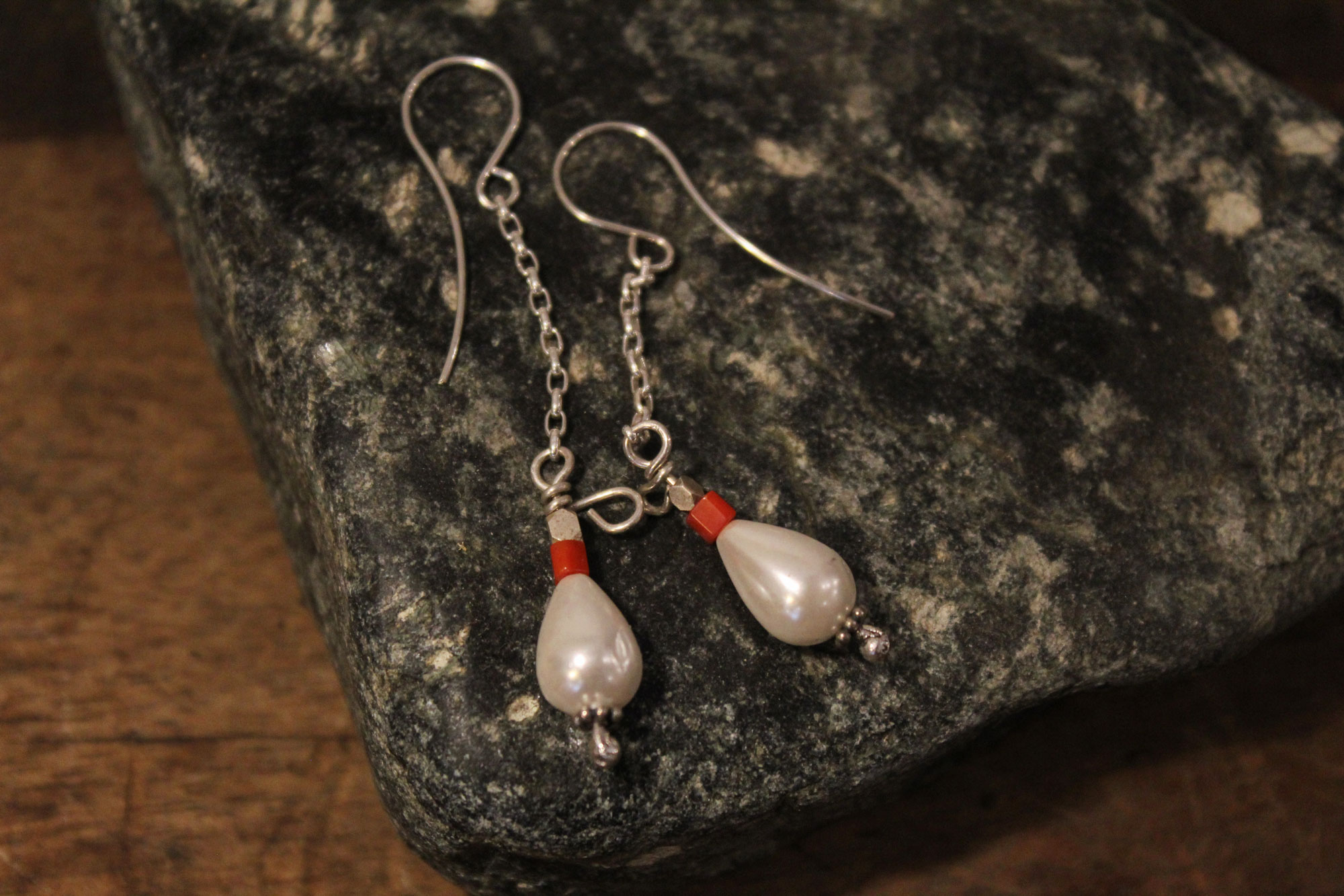 Χειροποίητα σκουλαρίκια κατασκευασμένα από ασήμι με υπέροχη κίνηση! Κοσμούνται από μικρά τσιπ κοραλλιού και σταγόνες μαργαριταριών.