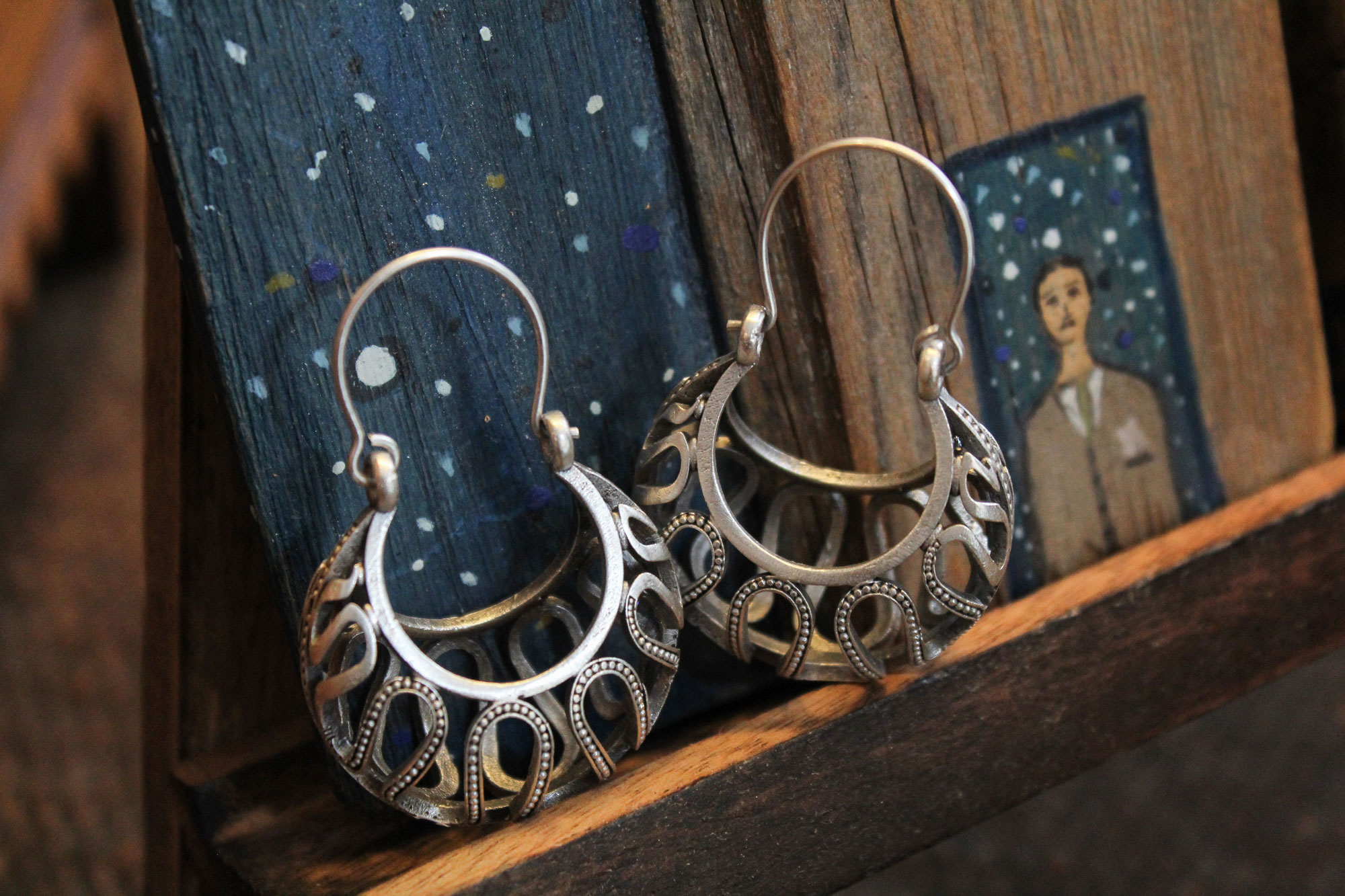 Σκουλαρίκια εισαγωγής κατασκευασμένα από αλπακά με εντυπωσιακό διάτρητο σχεδιασμό!