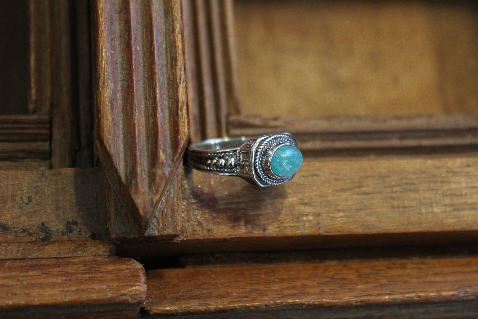 SAVATI χειροποίητο δαχτυλίδι κατασκευασμένο από ασήμι με εγχάρακτο σχεδιασμό και οβάλ πέτρωμα αμαζονίτη (6x8mm).