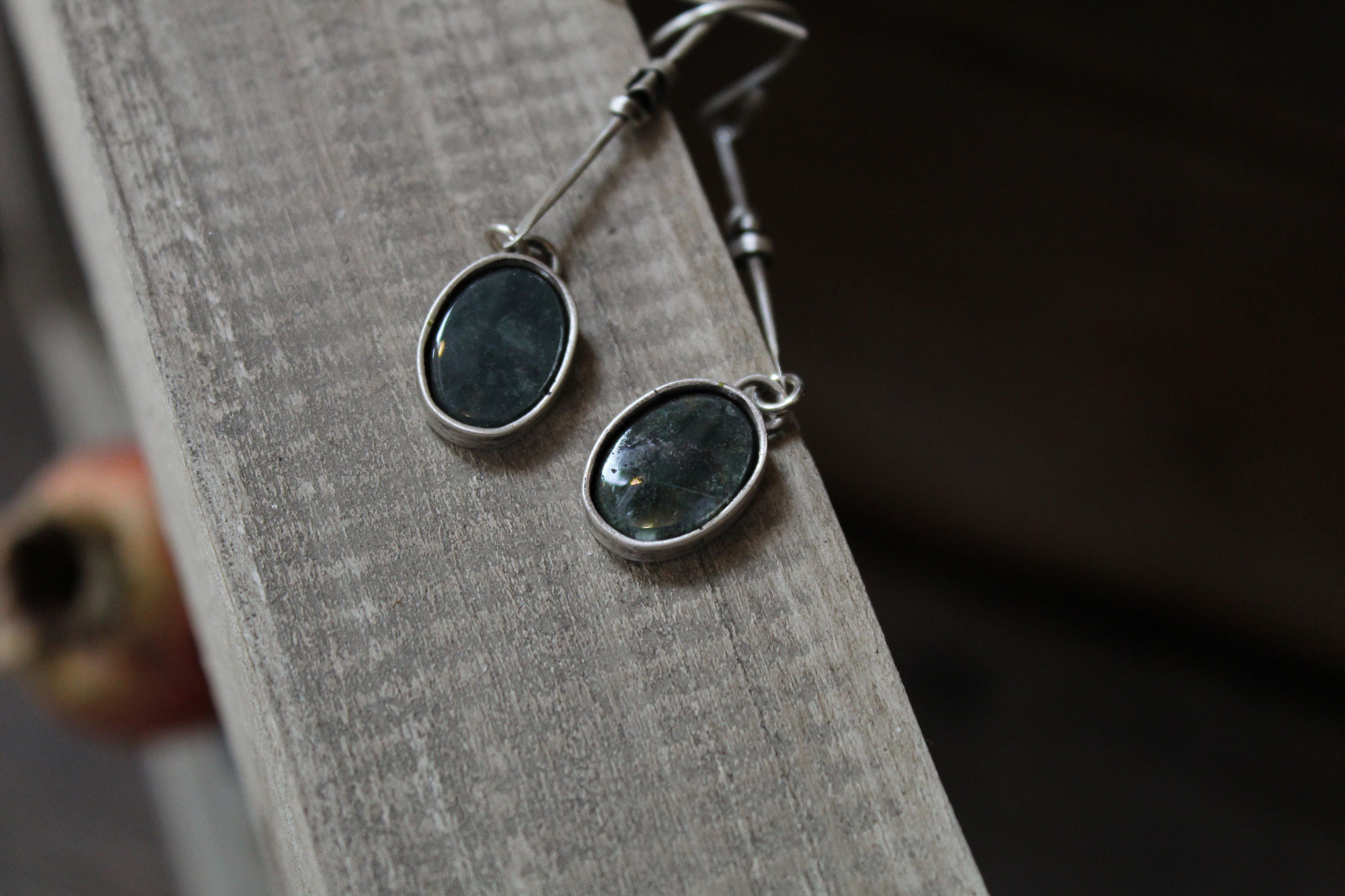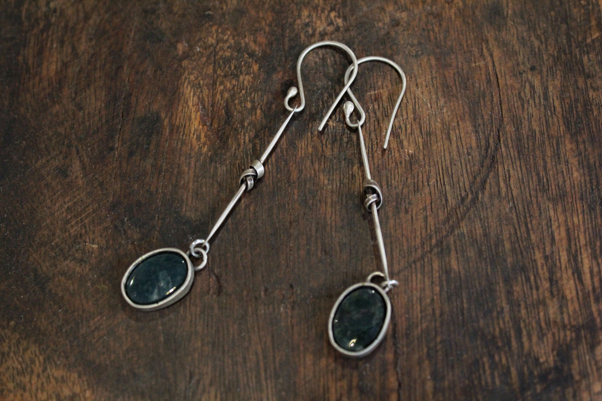Ασημένια μακριά σκουλαρίκια σε σχέδιο “κόμπου” και μοναδικά πετρώματα Hawk Eye.