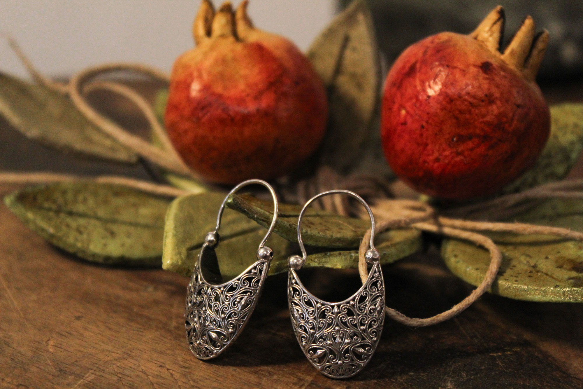 Gerochristo Jewelry χειροποίητα σκουλαρίκια κατασκευασμένα από ασήμι με εντυπωσιακό διάτρητο σχεδιασμό.