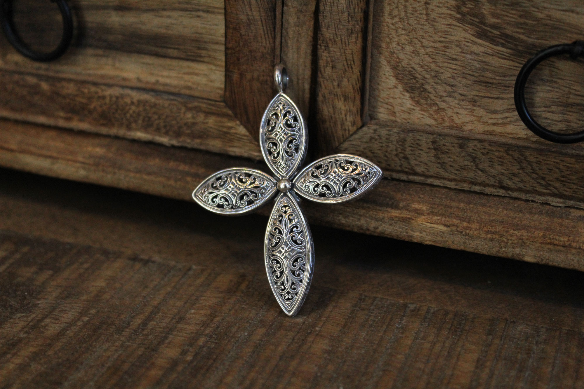 Gerochristo Jewelry μεγάλος, χειροποίητος σταυρός με περίτεχνο σχεδιασμό κατασκευασμένος από ασήμι.