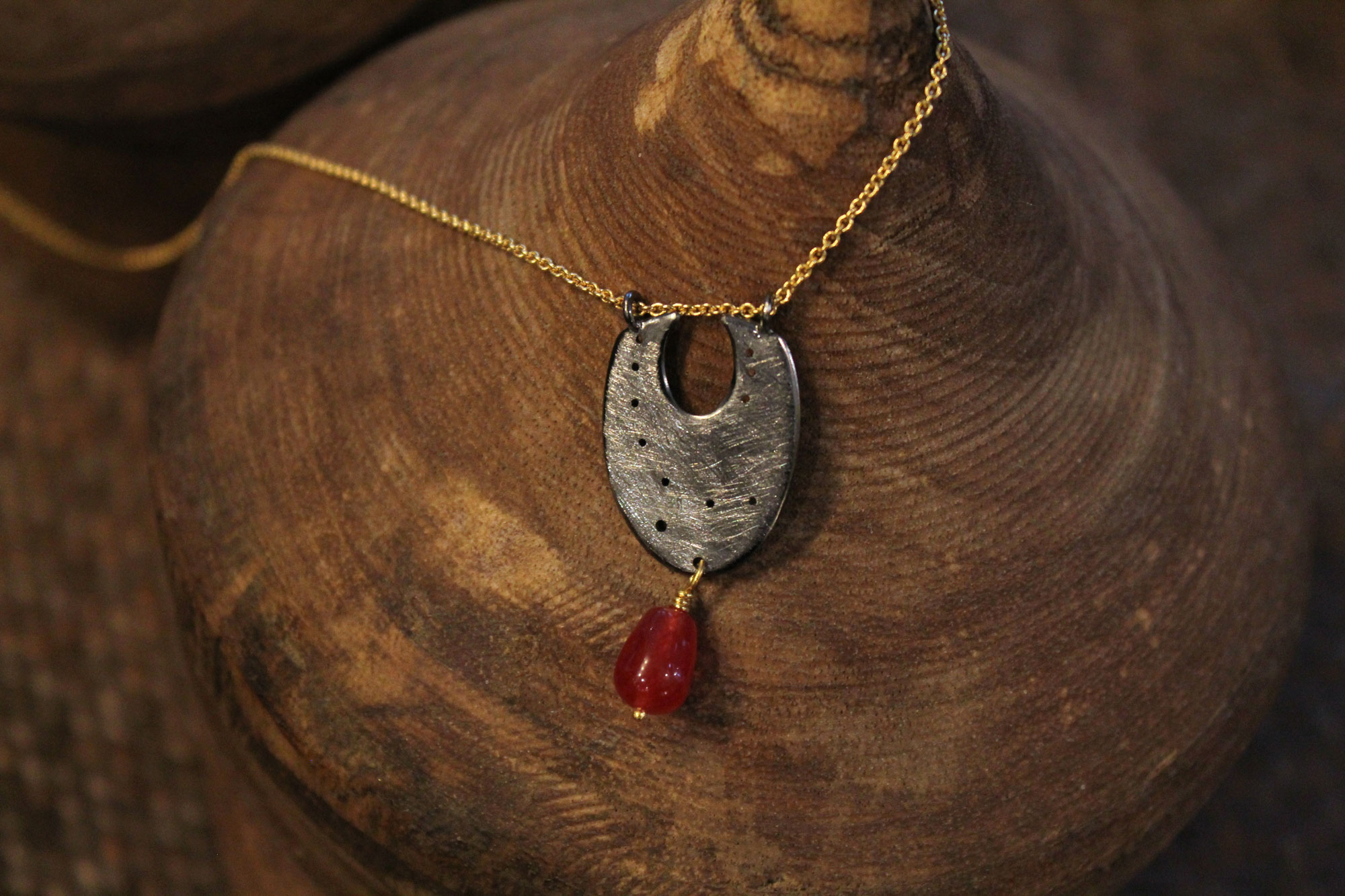 CHRYSOULA SOFOU χειροποίητο κολιέ σε μίνιμαλ, γεωμετρικό σχεδιασμό κατασκευασμένο από μαύρο επιροδιωμένο ασήμι και επίχρυση αλυσίδα μήκους 50cm.