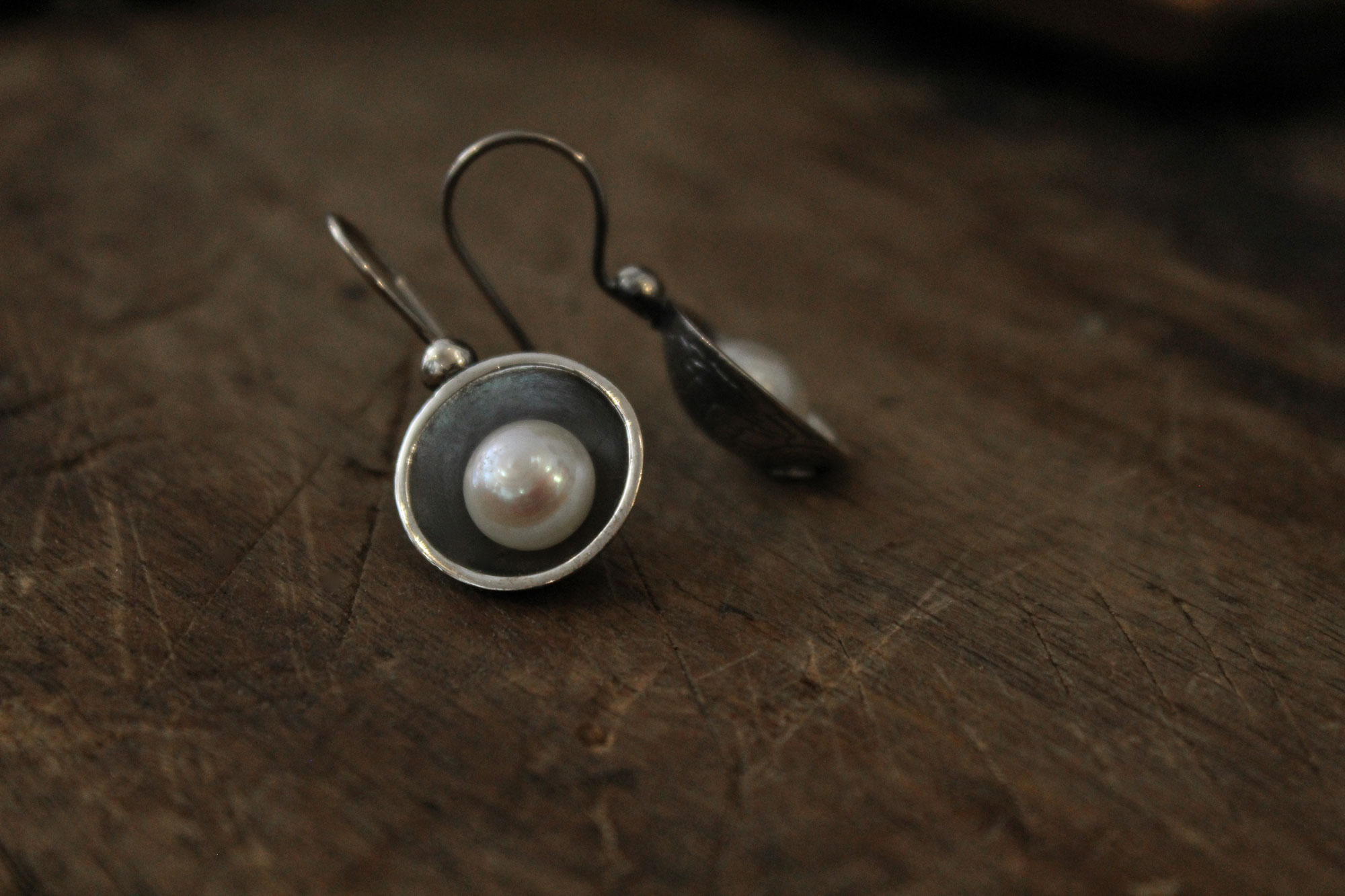 Μοναδικά χειροποίητα σκουλαρίκια κατασκευασμένα από οξειδωμένο ασήμι και μαργαριτάρια καλλιέργειας.