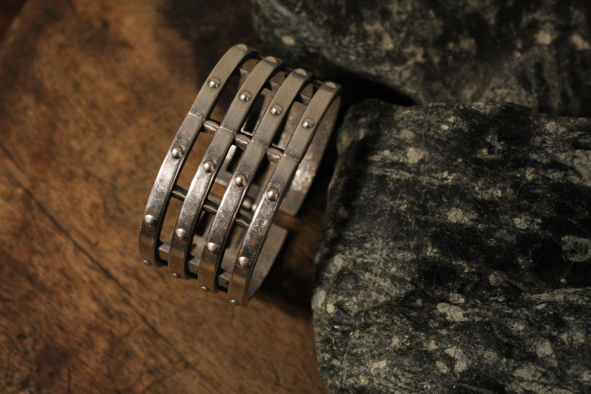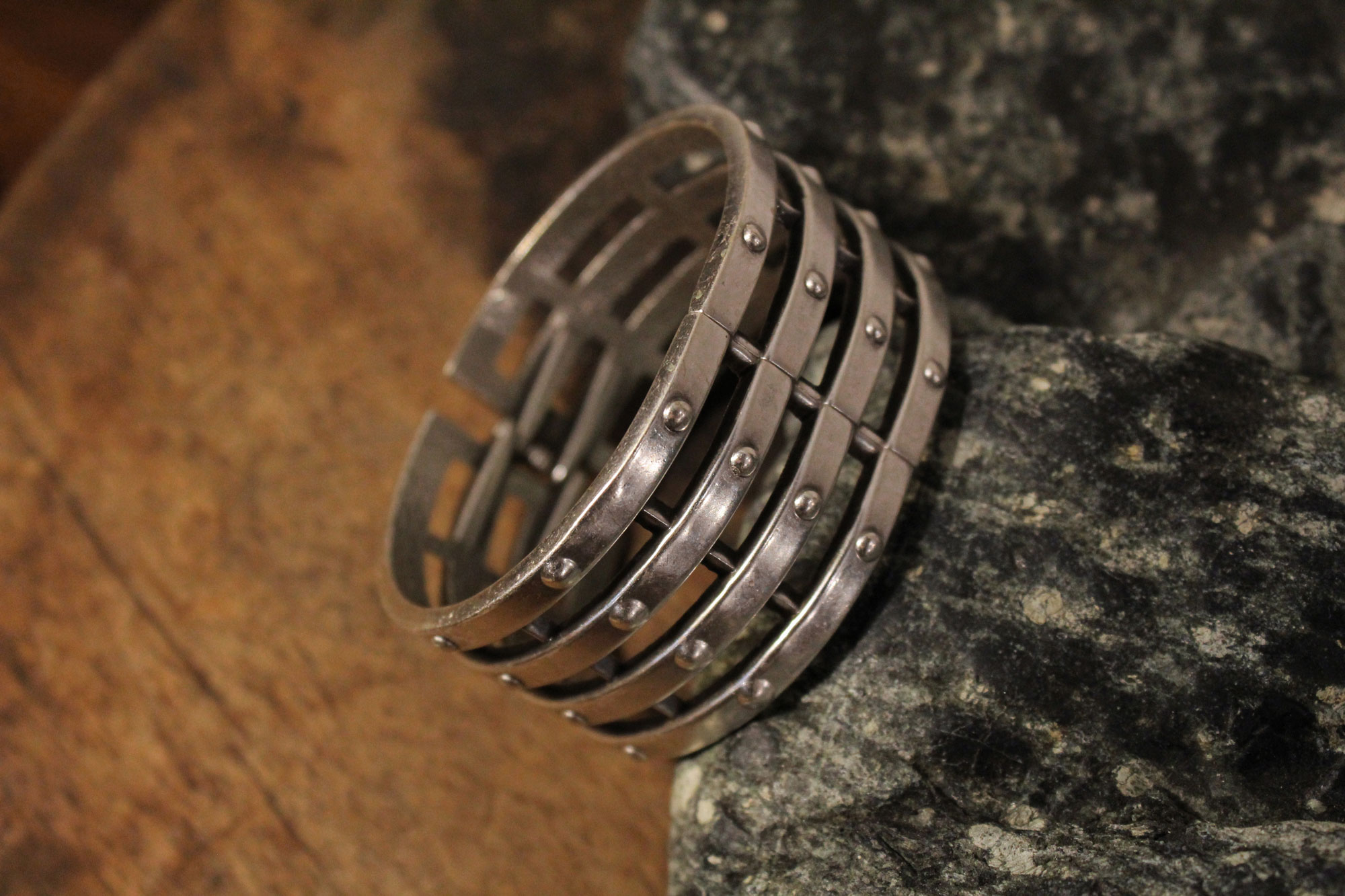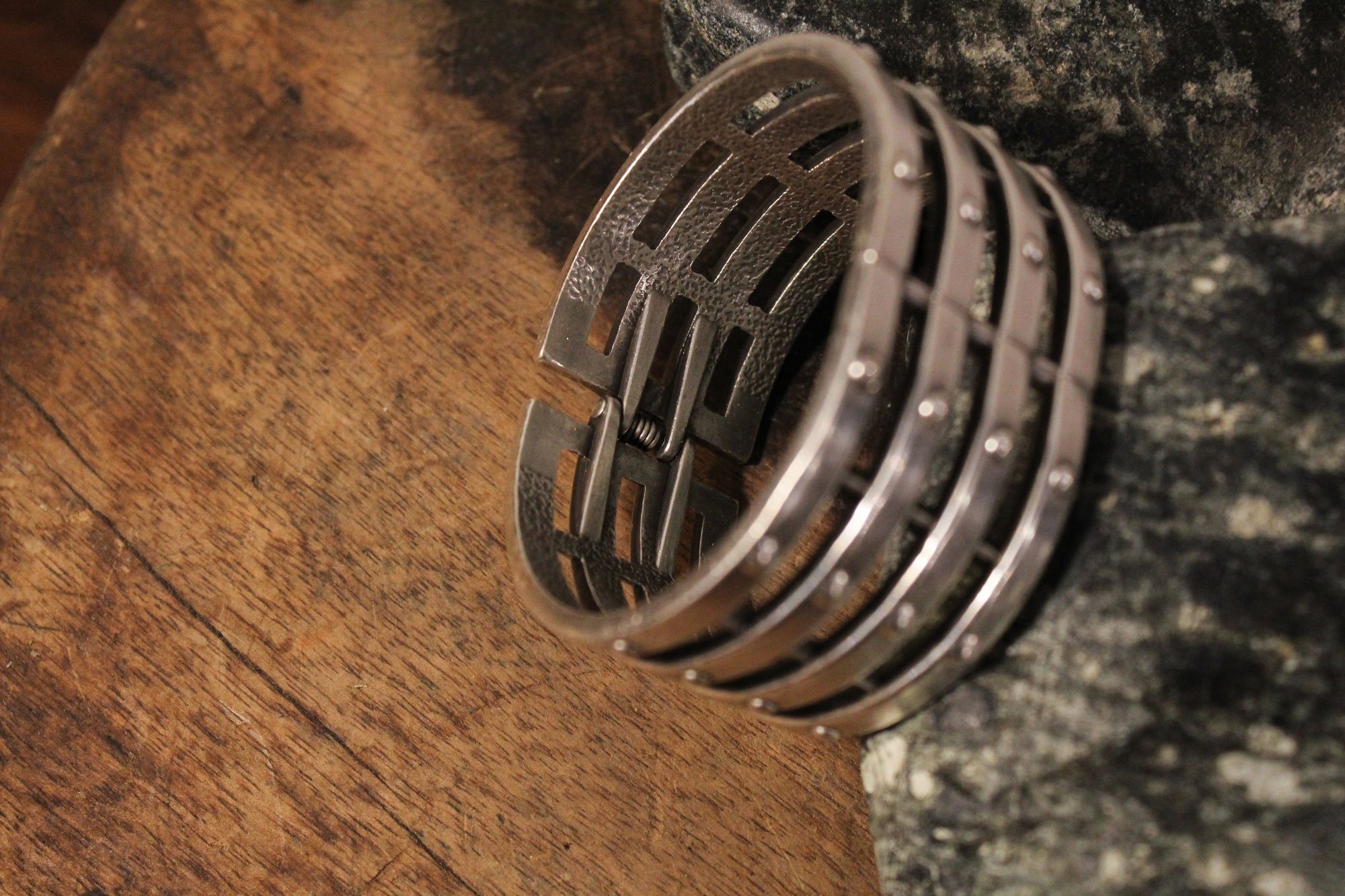 Χειροποίητο βραχιόλι εισαγωγής κατασκευασμένο από αλπακά σε λιτό σχεδιασμό. Εφαρμόζει στο χέρι σταθερά, ενώ είναι ανοιγόμενο χάρη στον μηχανισμό που διαθέτει στο κάτω μέρος του όπως φαίνεται στην τρίτη φωτογραφία.