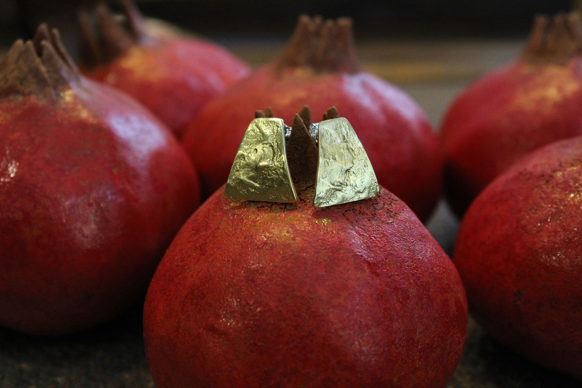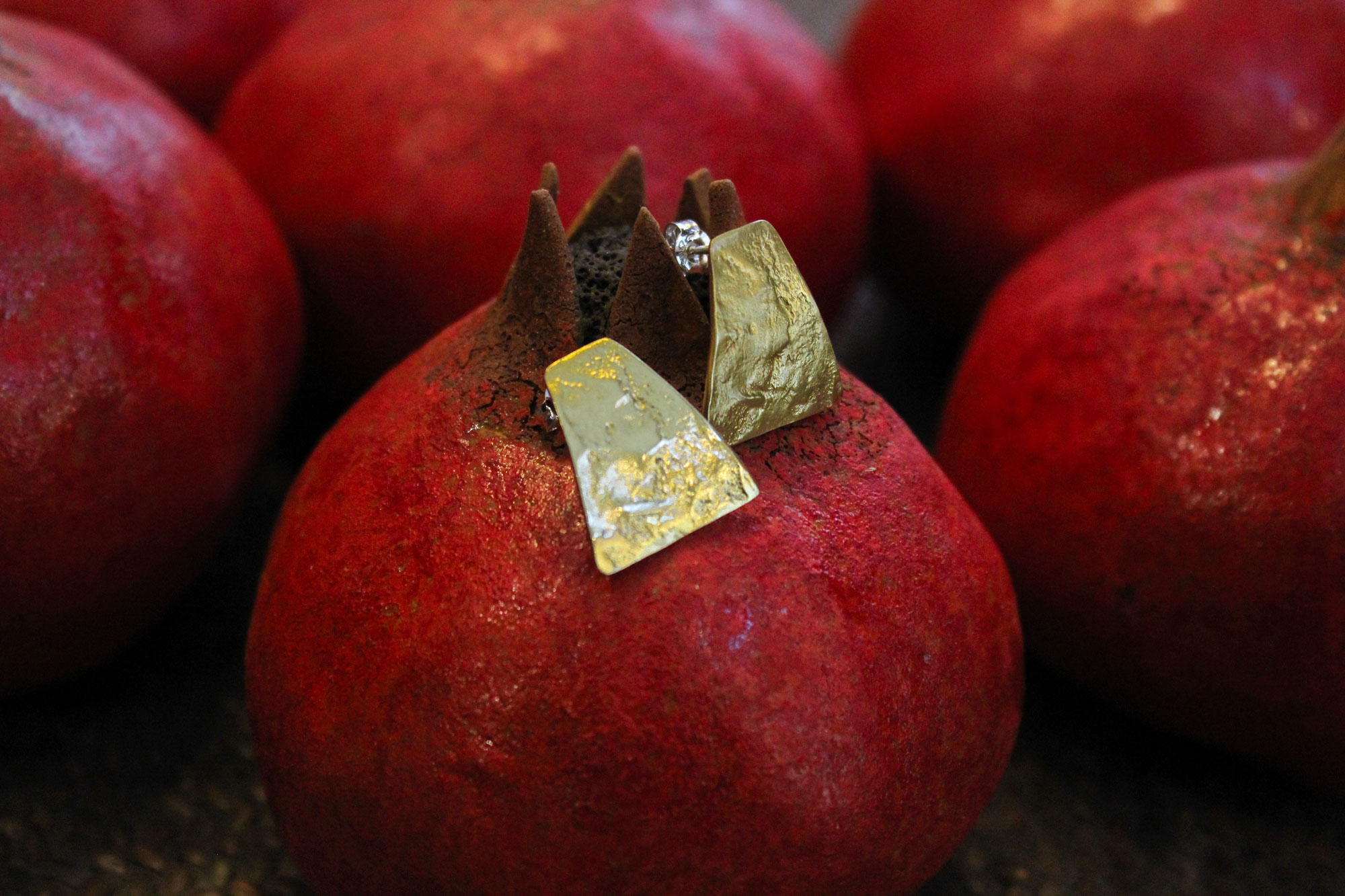 Χειροποίητα σκουλαρίκια ελληνικής δημιουργίας κατασκευασμένα από επιχρυσωμένο ορείχαλκο σε σφυρήλατο σχεδιασμό.