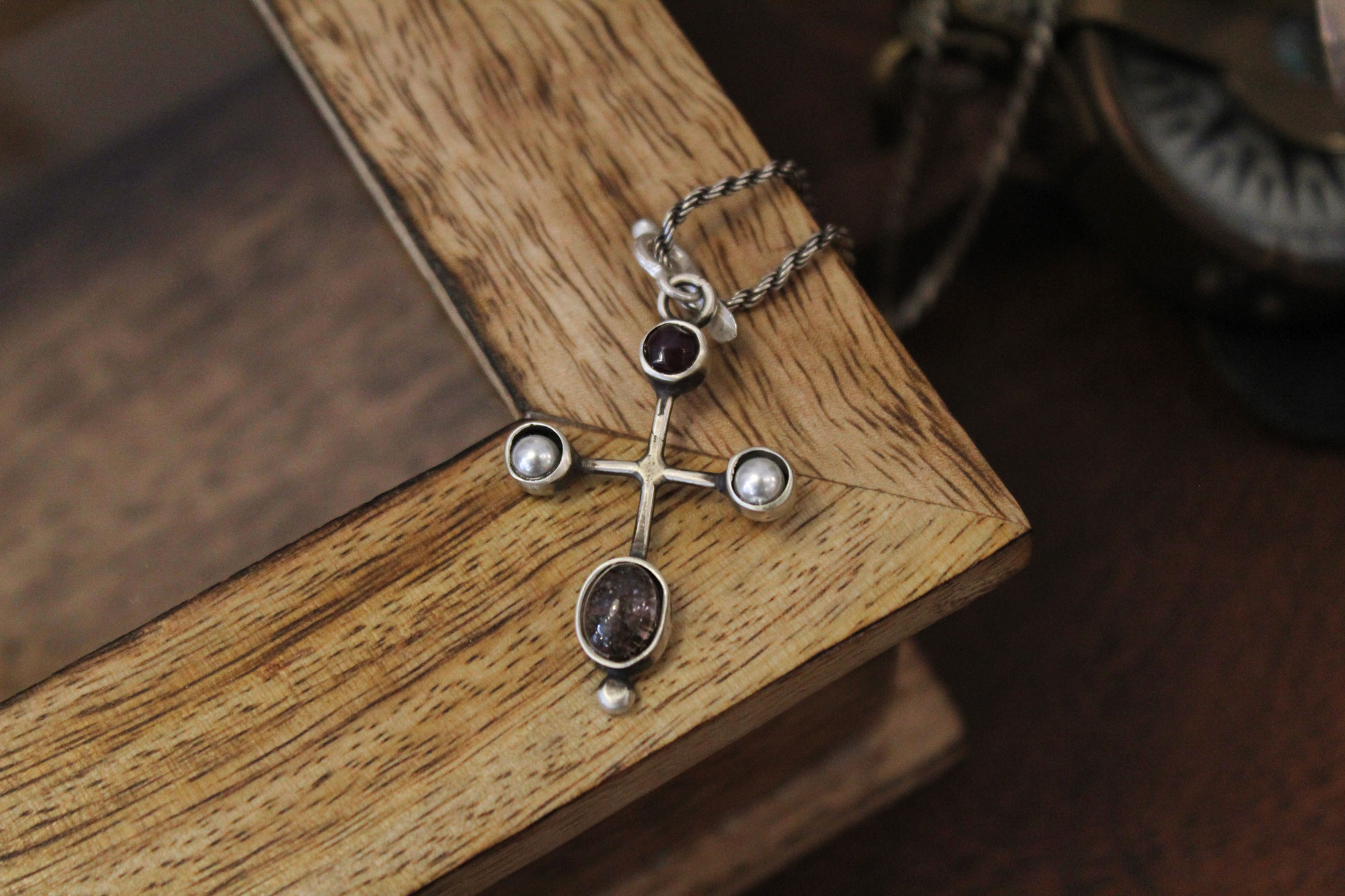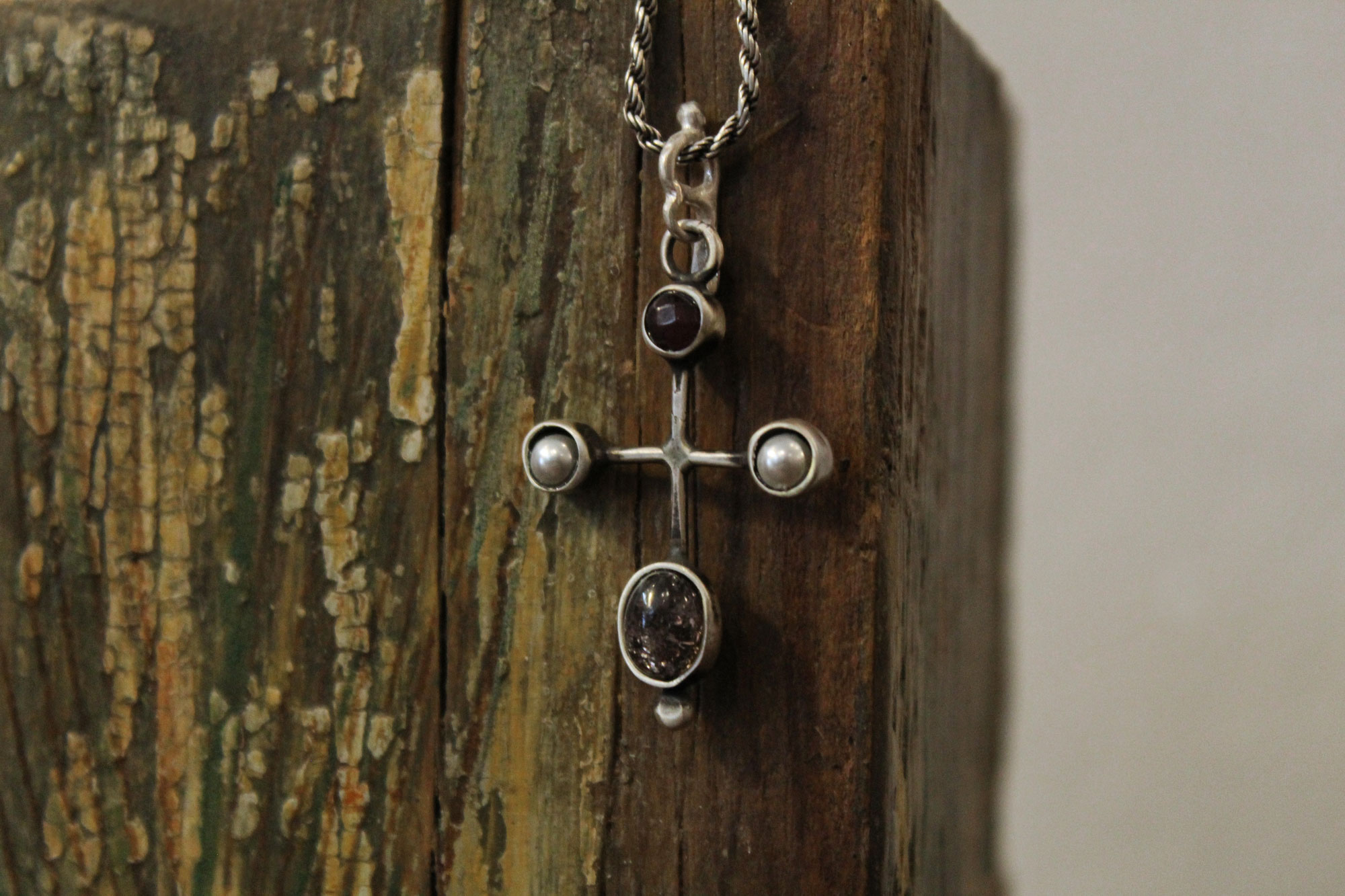 Silver Cross with Semiprecious Stones