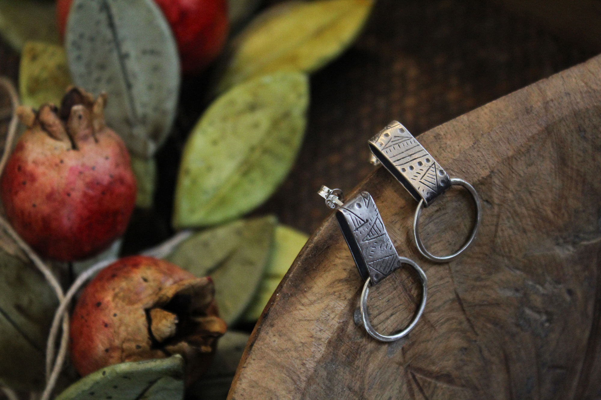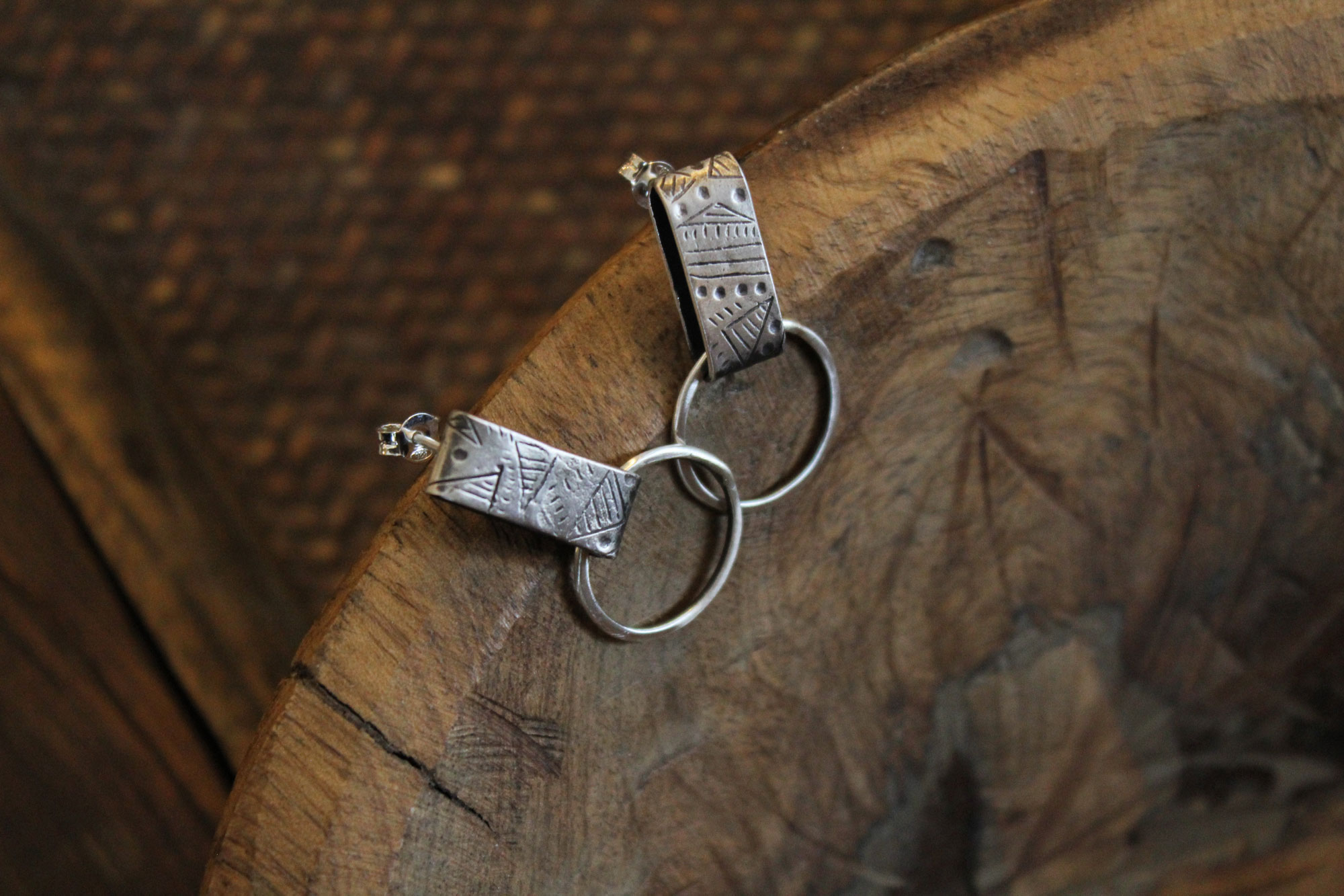 Μοναδικά χειροποίητα σκουλαρίκια κατασκευασμένα από ασήμι και εγχάρακτο σχεδιασμό.