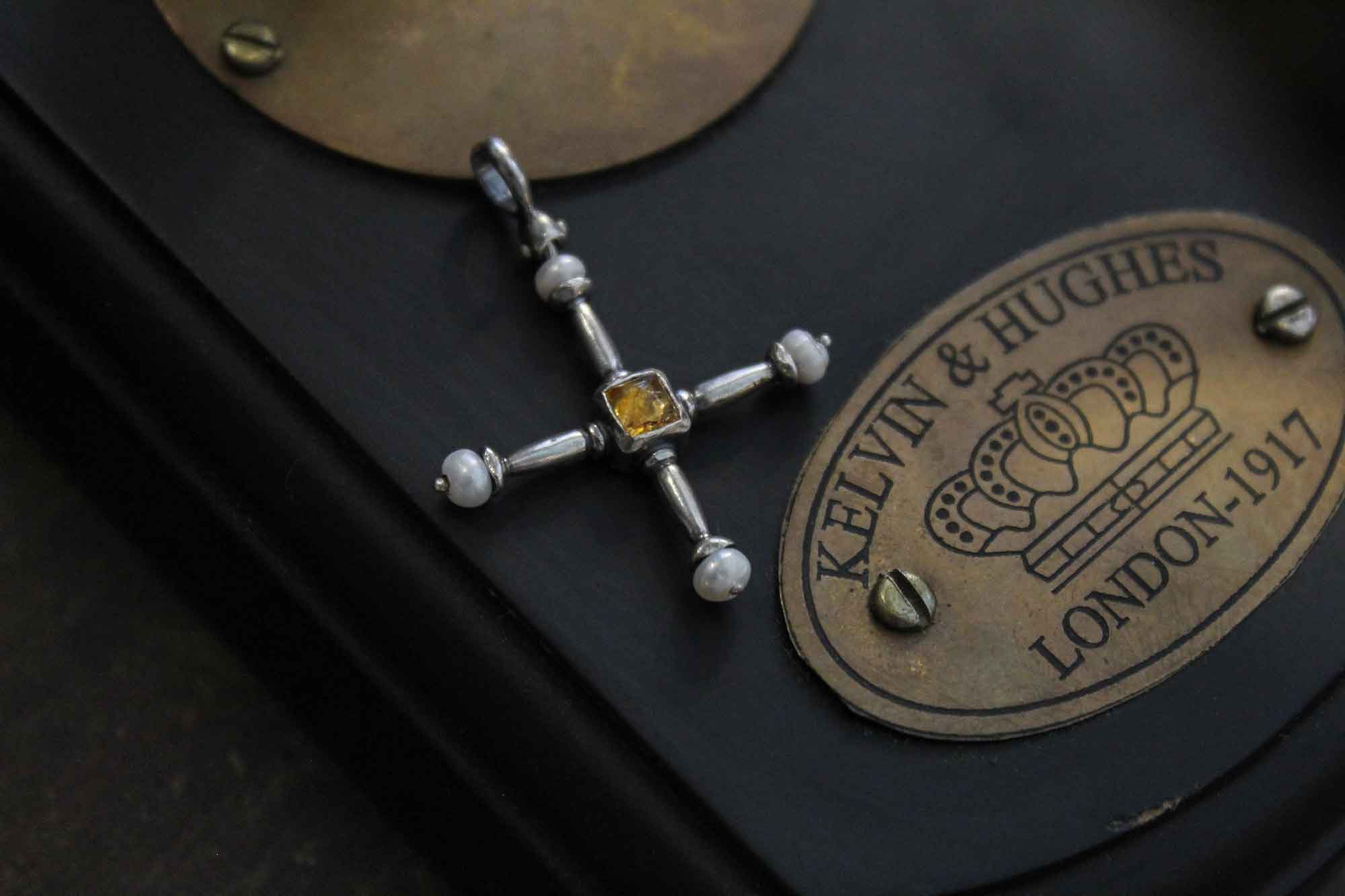 Simple Silver Cross with Citrine