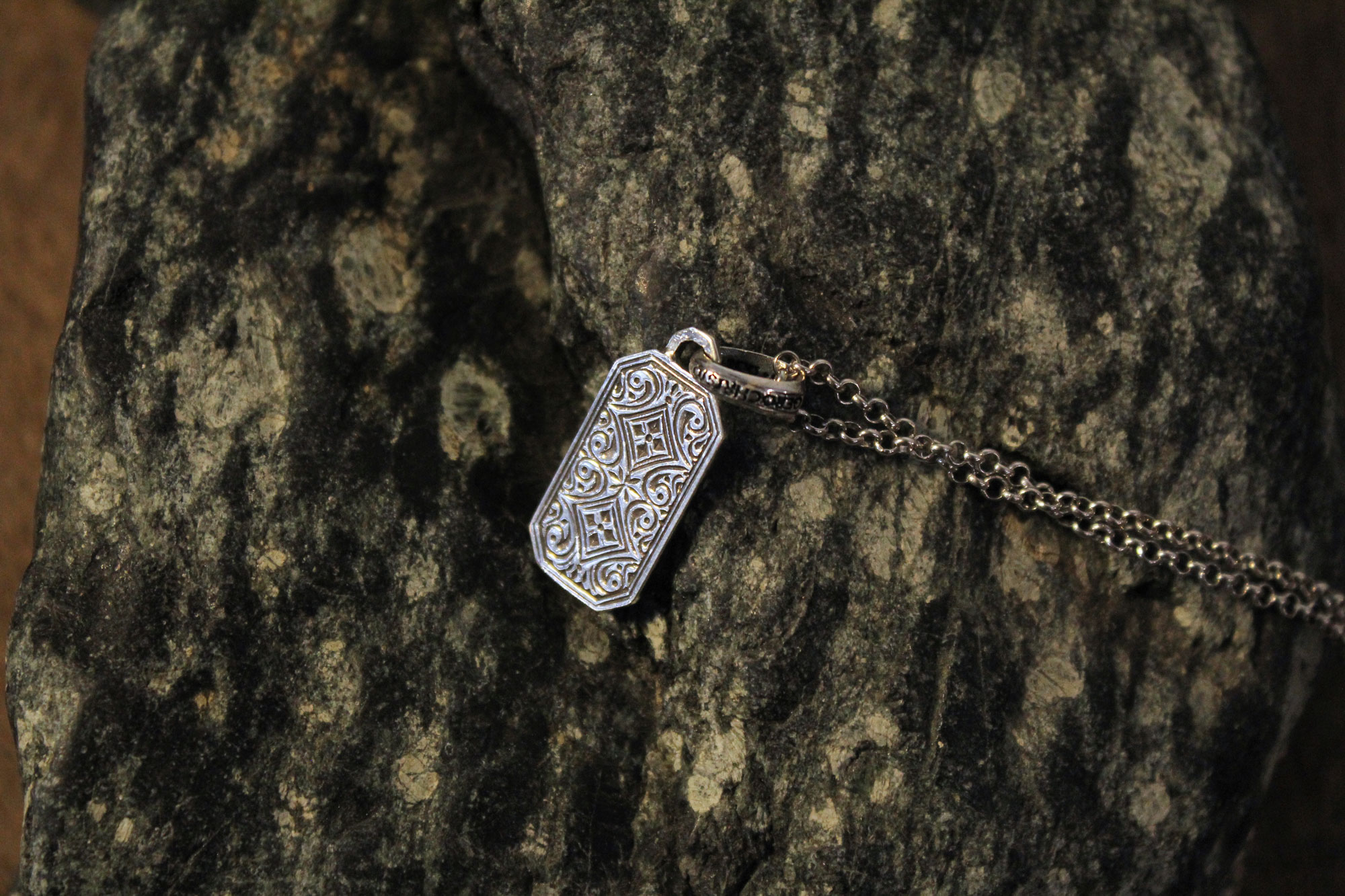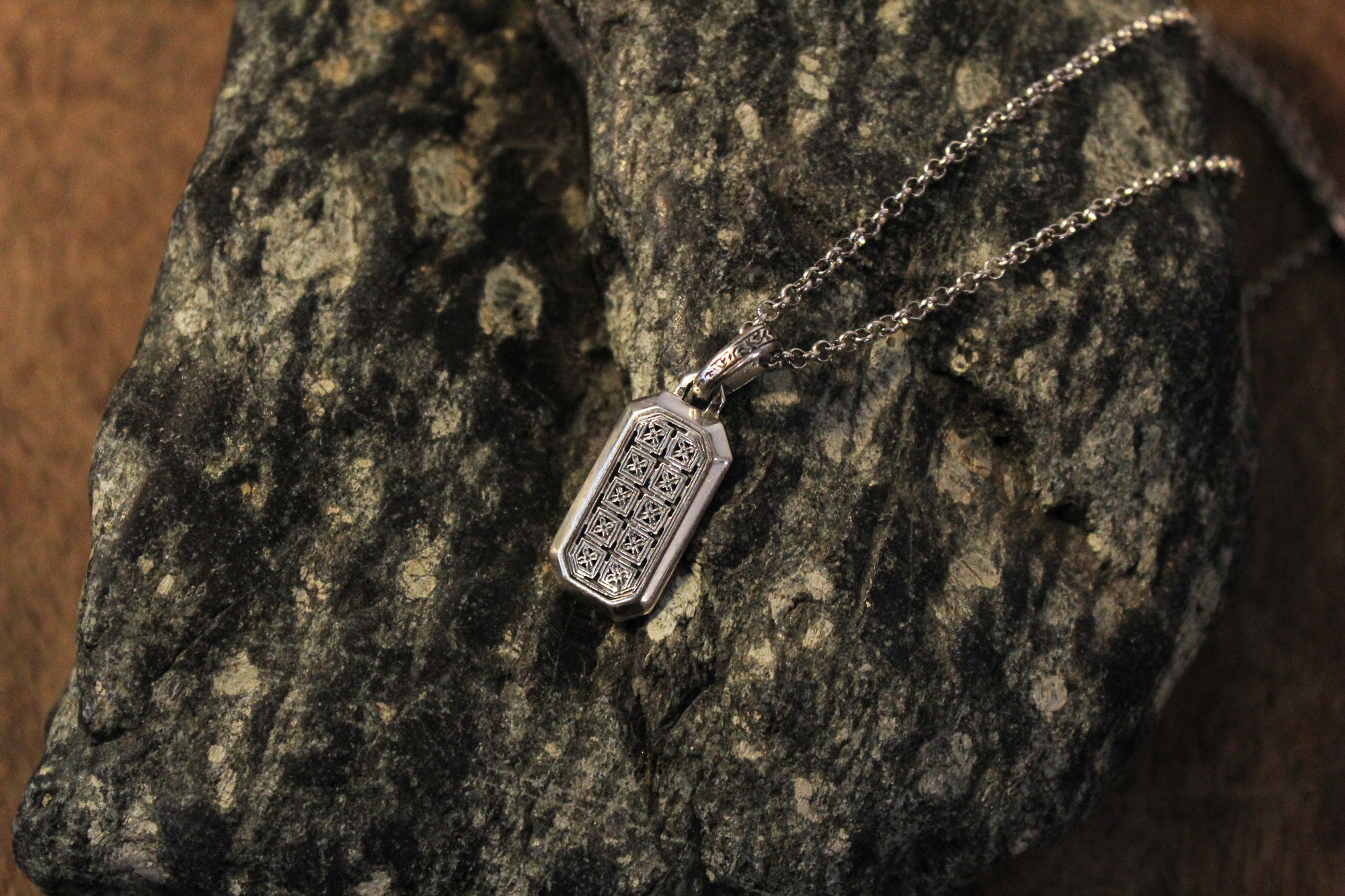 Gerochristo Jewelry χειροποίητο μενταγιόν κατασκευασμένο από ασήμι σε λιτό εγχάρακτο σχεδιασμό.