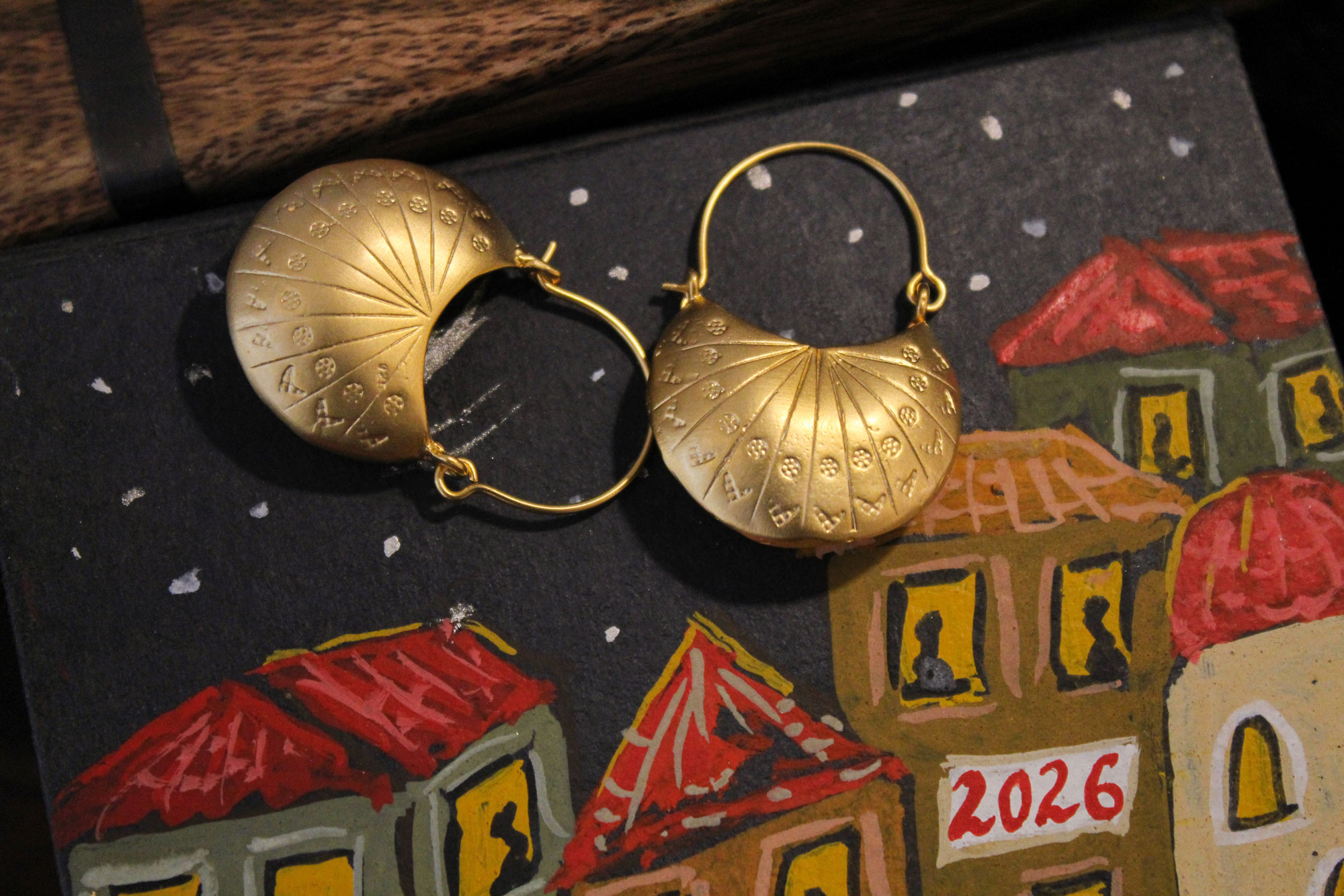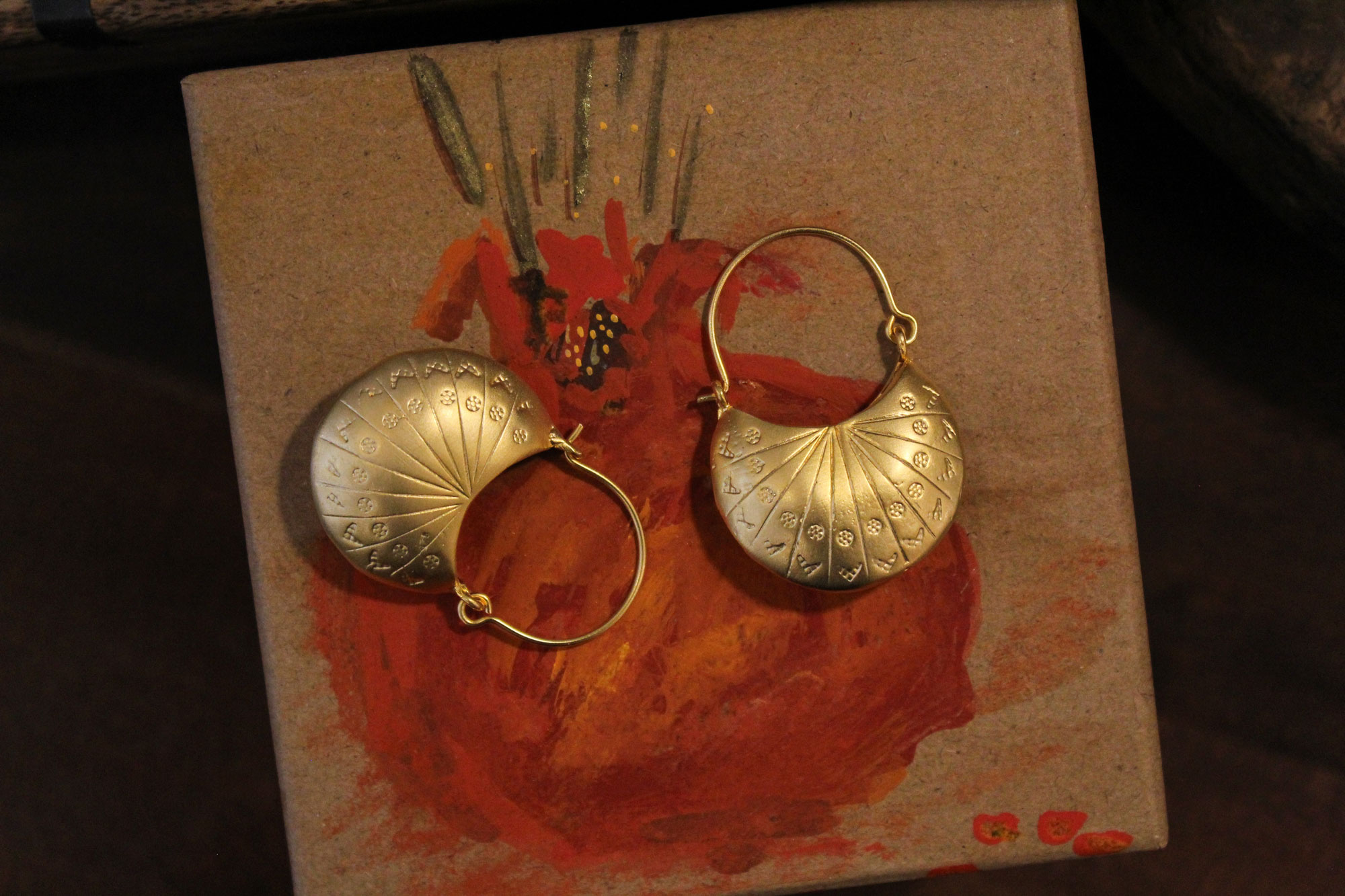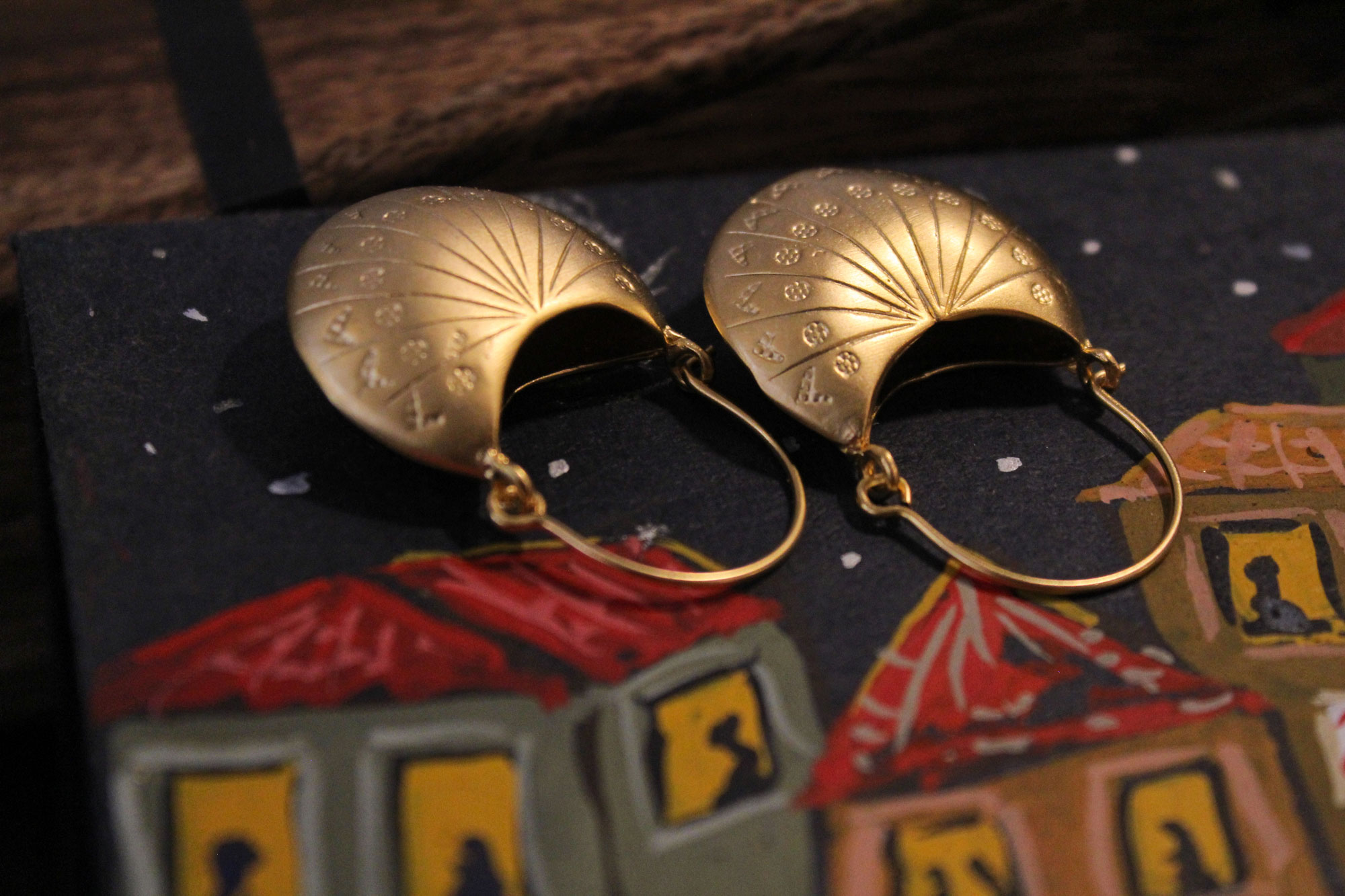 Χειροποίητα σκουλαρίκια εισαγωγής κατασκευασμένα από επιχρυσωμένο αλπακά με εγχάρακτο σχεδιασμό!